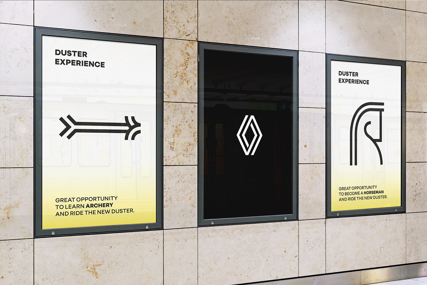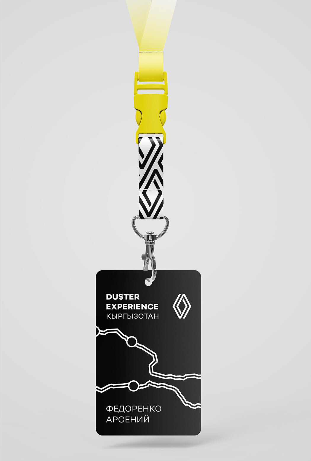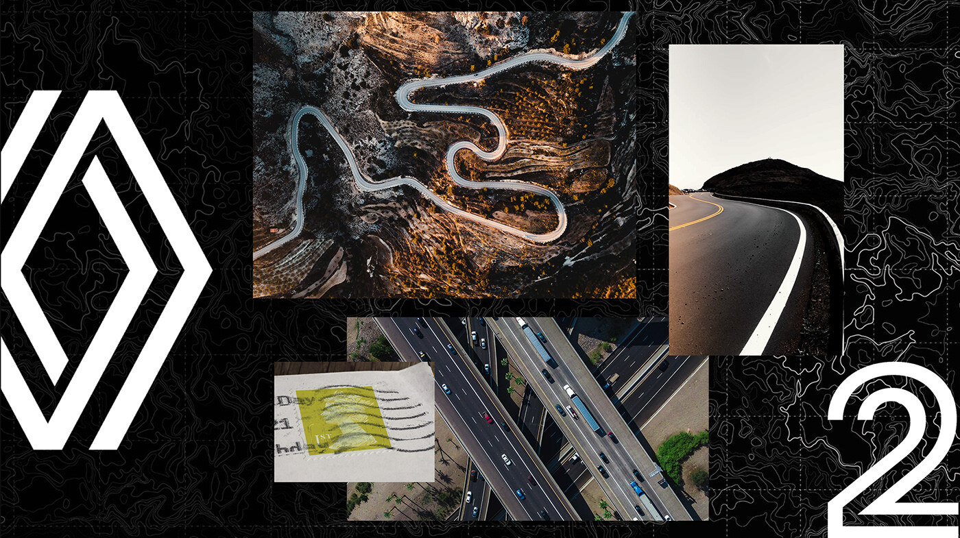Graphic language of a event inspired by refreshed Renault identity. The main design tool is double line that forms routes and activity logos, these things are complemented by a fresh yellow-white gradient.